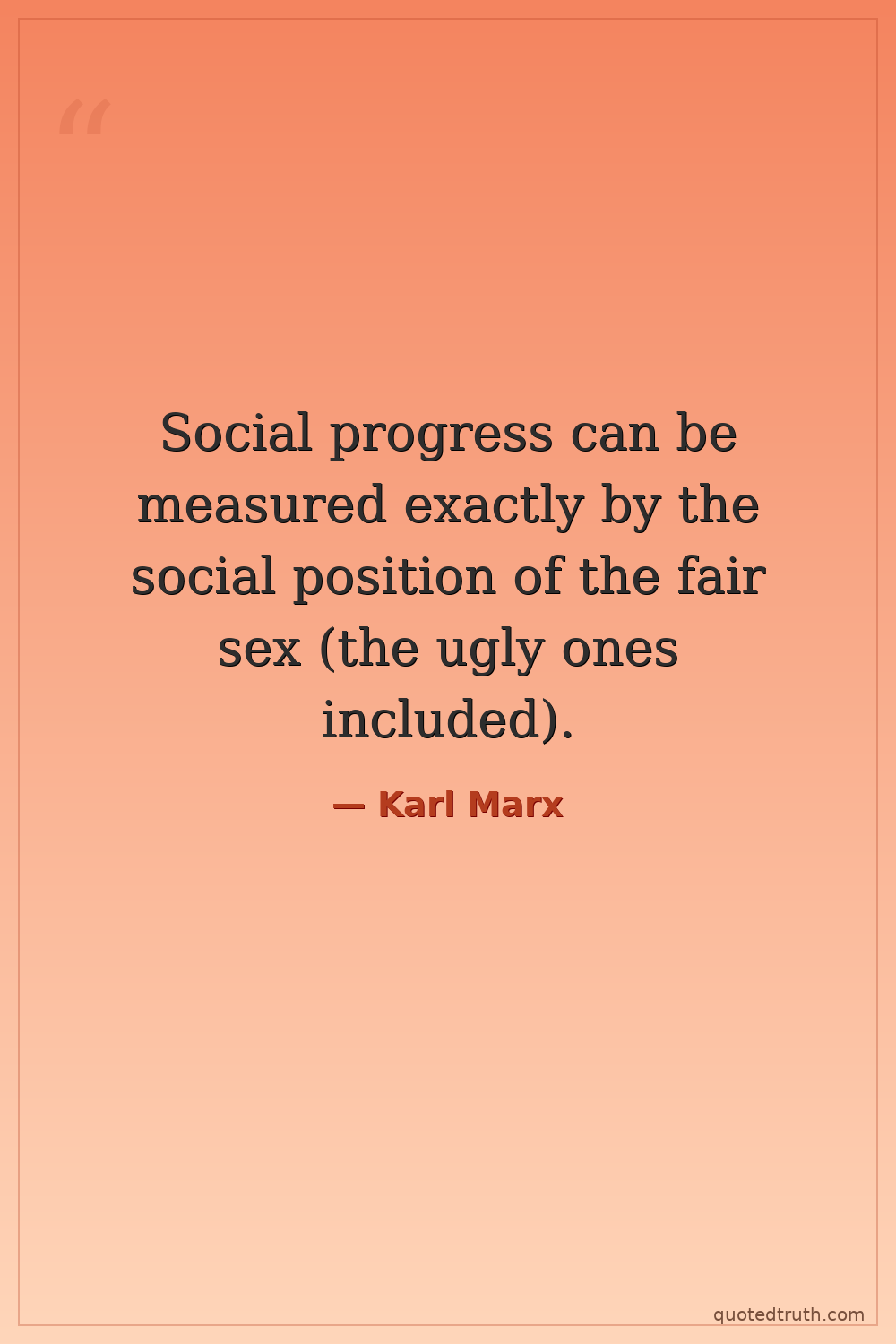 Social progress can be measured exactly by the social position of the fair sex (the ugly ones included).