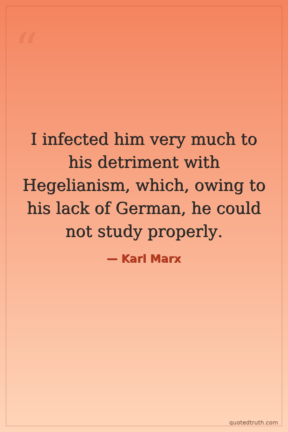 I infected him very much to his detriment with Hegelianism, which, owing to his lack of German, he could not study properly.