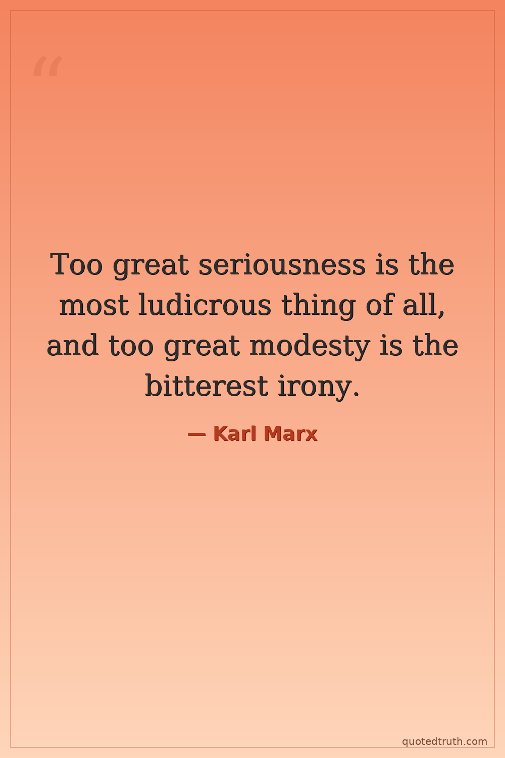 Too great seriousness is the most ludicrous thing of all, and too great modesty is the bitterest irony.
