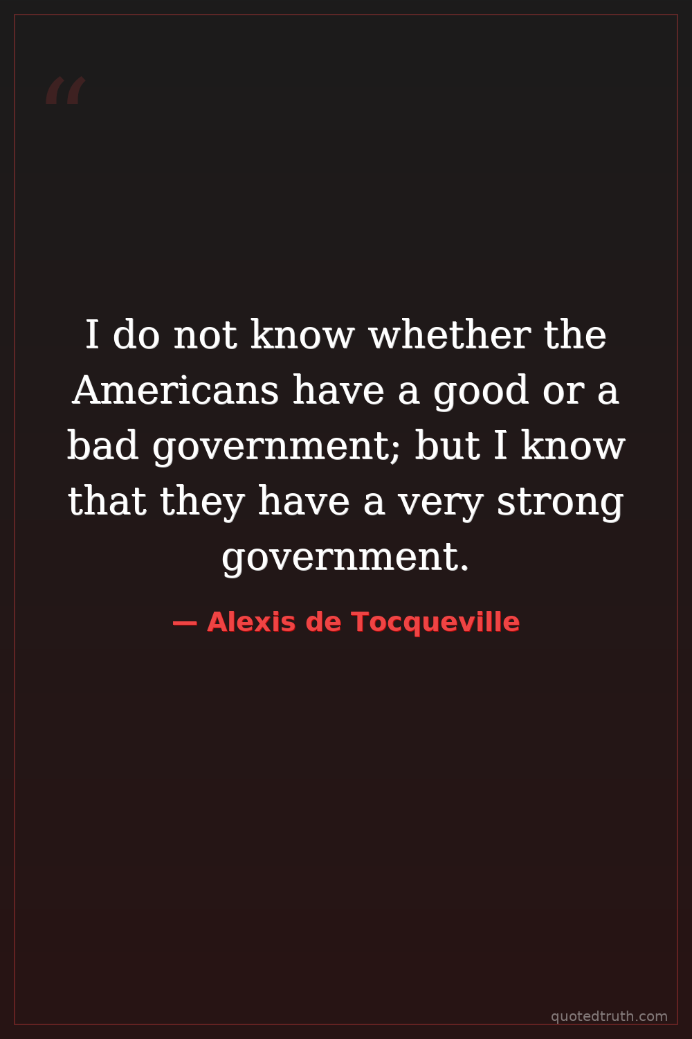 I do not know whether the Americans have a good or a bad government; but I know that they have a very strong government.
