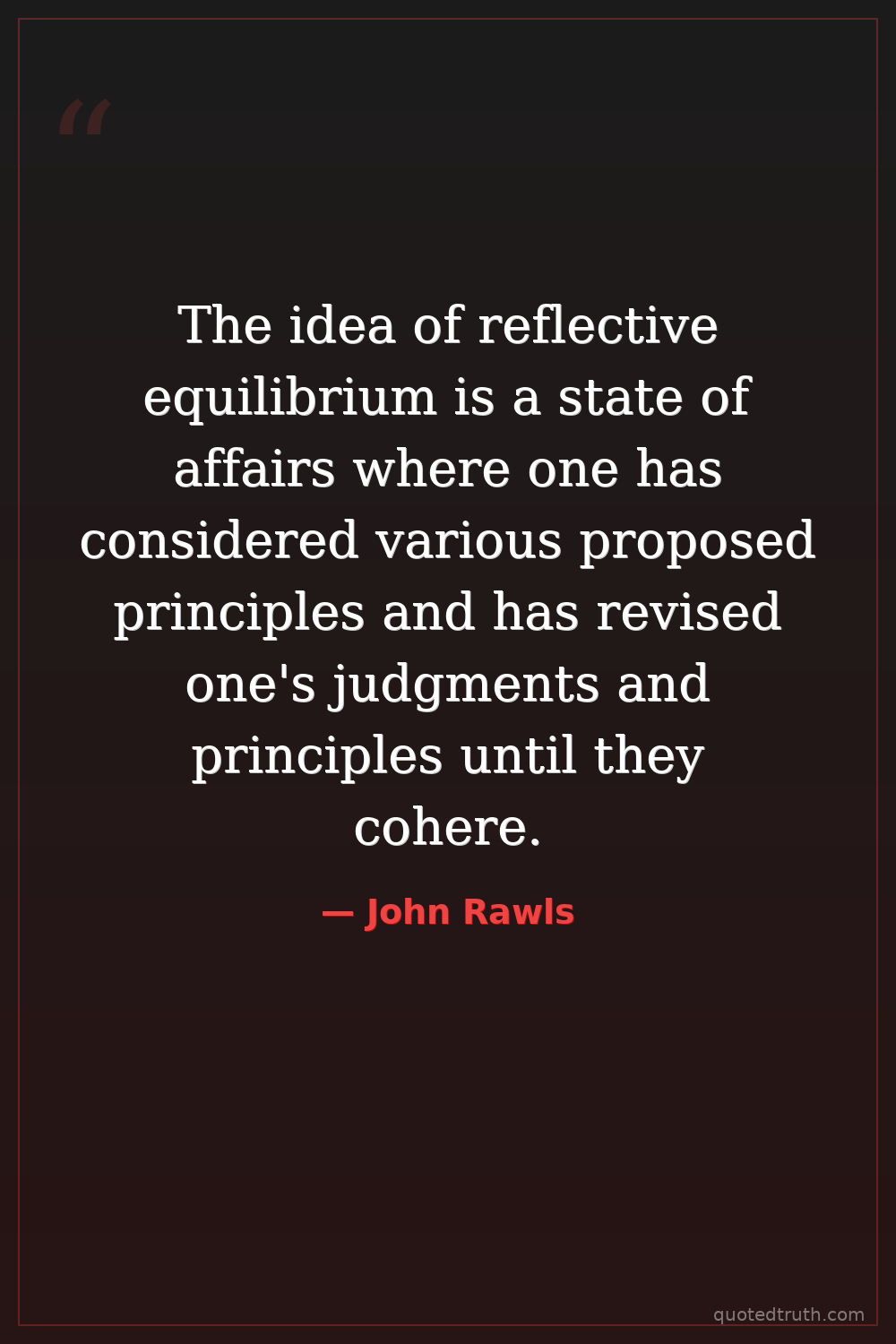 Strange & Unusual"The idea of reflective equilibrium is a state of affairs where our considered judgments about justice and our principles of justice are in harmony."