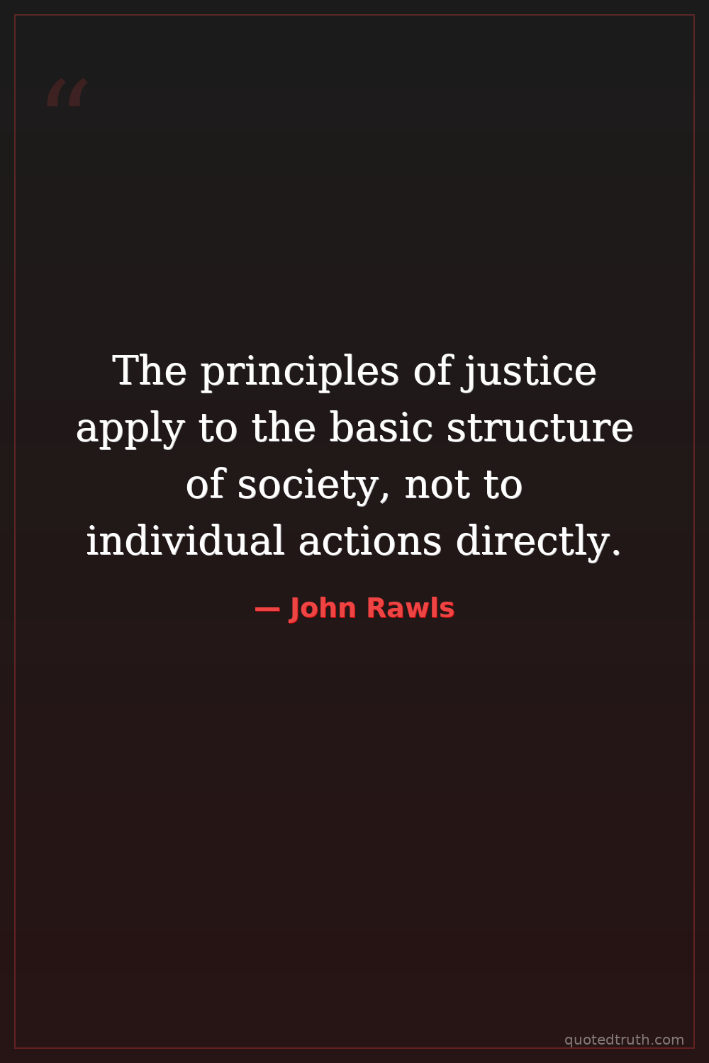 The principles of justice apply to the basic structure of society, not to individual actions directly.
