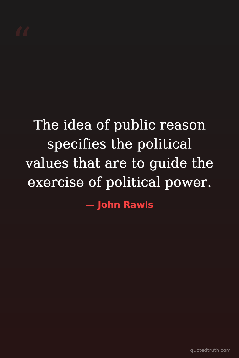 The idea of public reason specifies the political values that are to guide the exercise of political power.