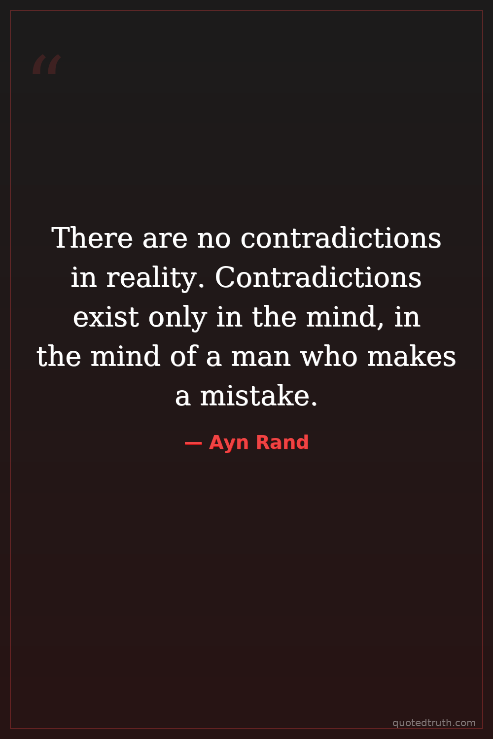 There are no contradictions in reality. Contradictions exist only in the mind, in the mind of a man who makes a mistake.