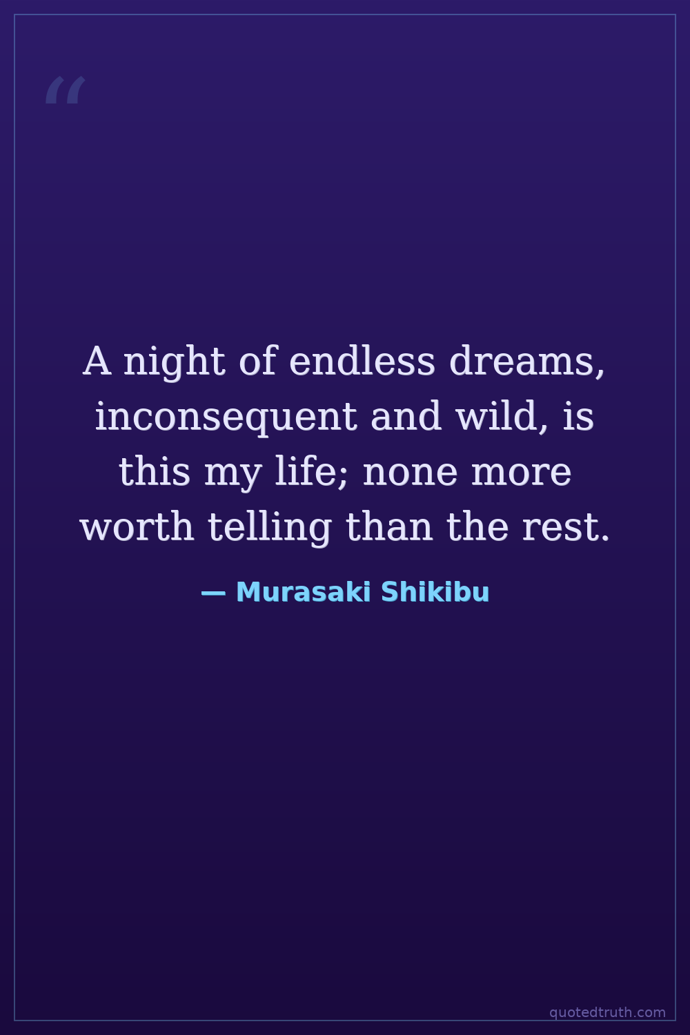 A night of endless dreams, inconsequent and wild, is this my life; none more worth telling than the rest.