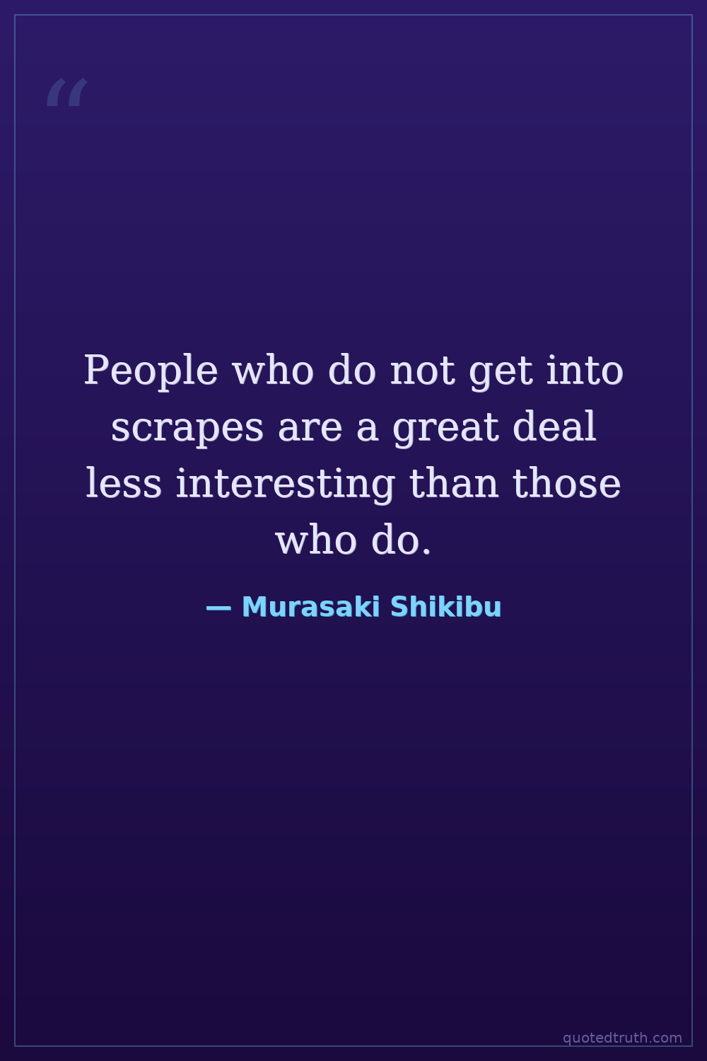 People who do not get into scrapes are a great deal less interesting than those who do.