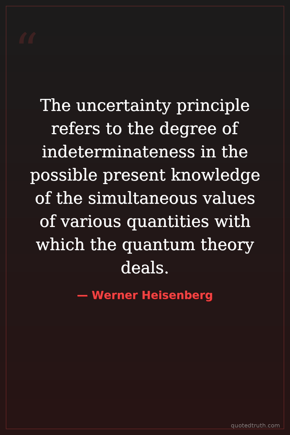 The uncertainty principle refers to the degree of indeterminateness in the possible present knowledge of the simultaneous values of various quantities with which the quantum theory deals.