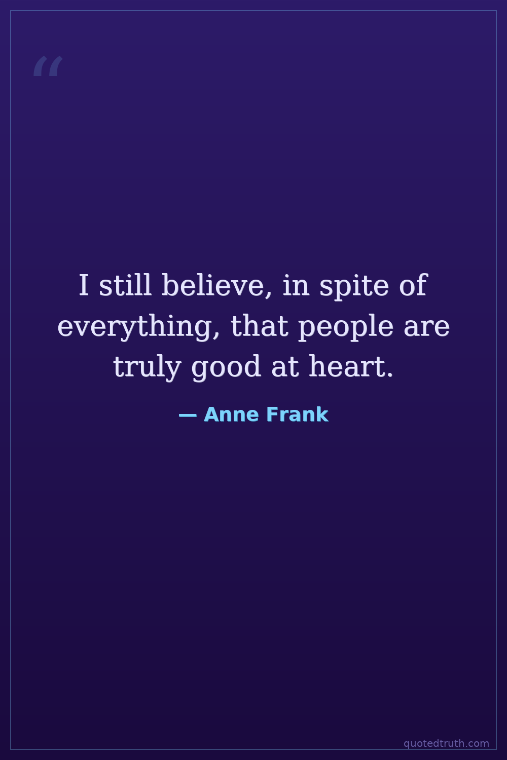 I still believe, in spite of everything, that people are truly good at heart.