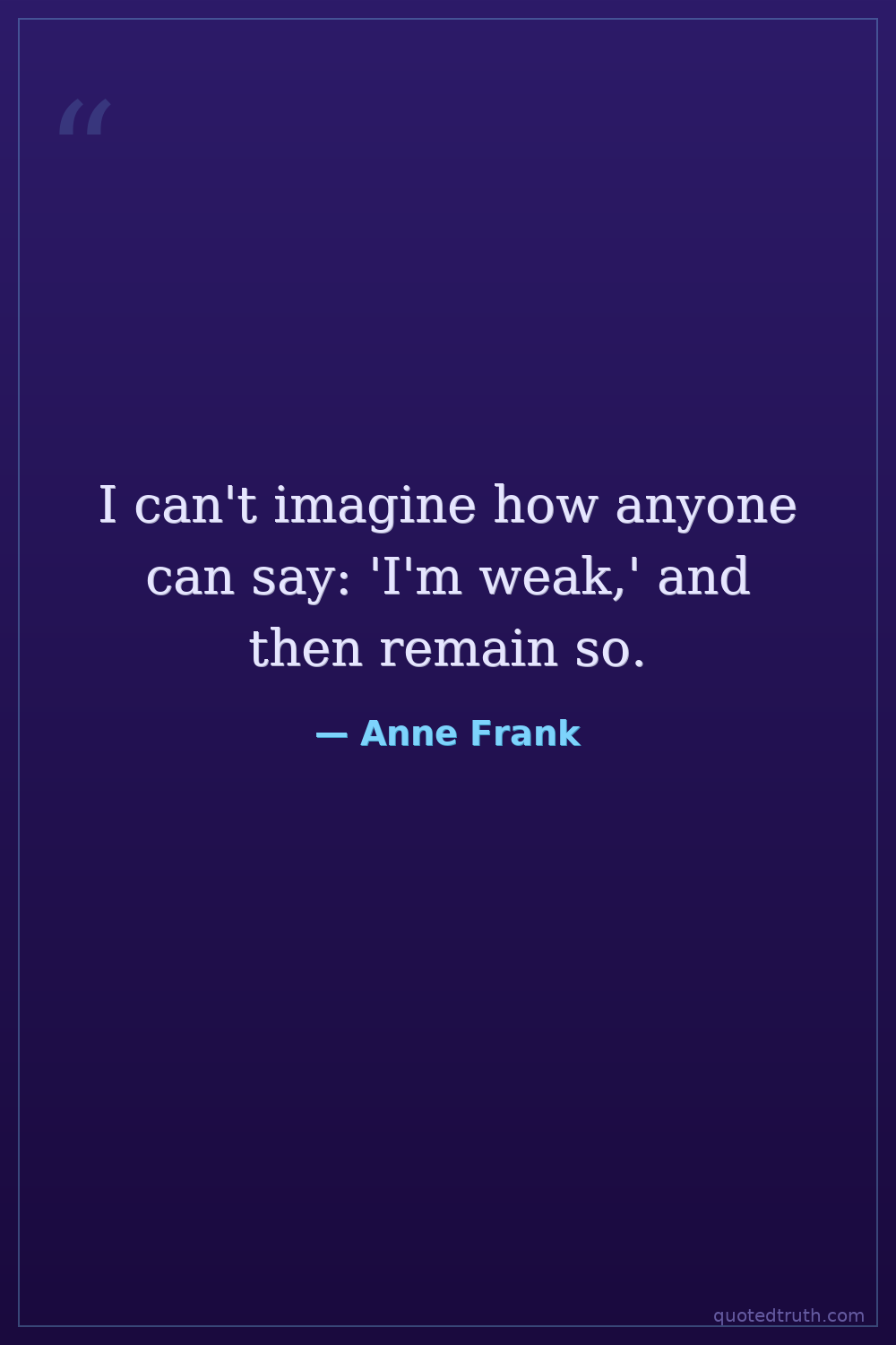 I can't imagine how anyone can say: 'I'm weak,' and then remain so.