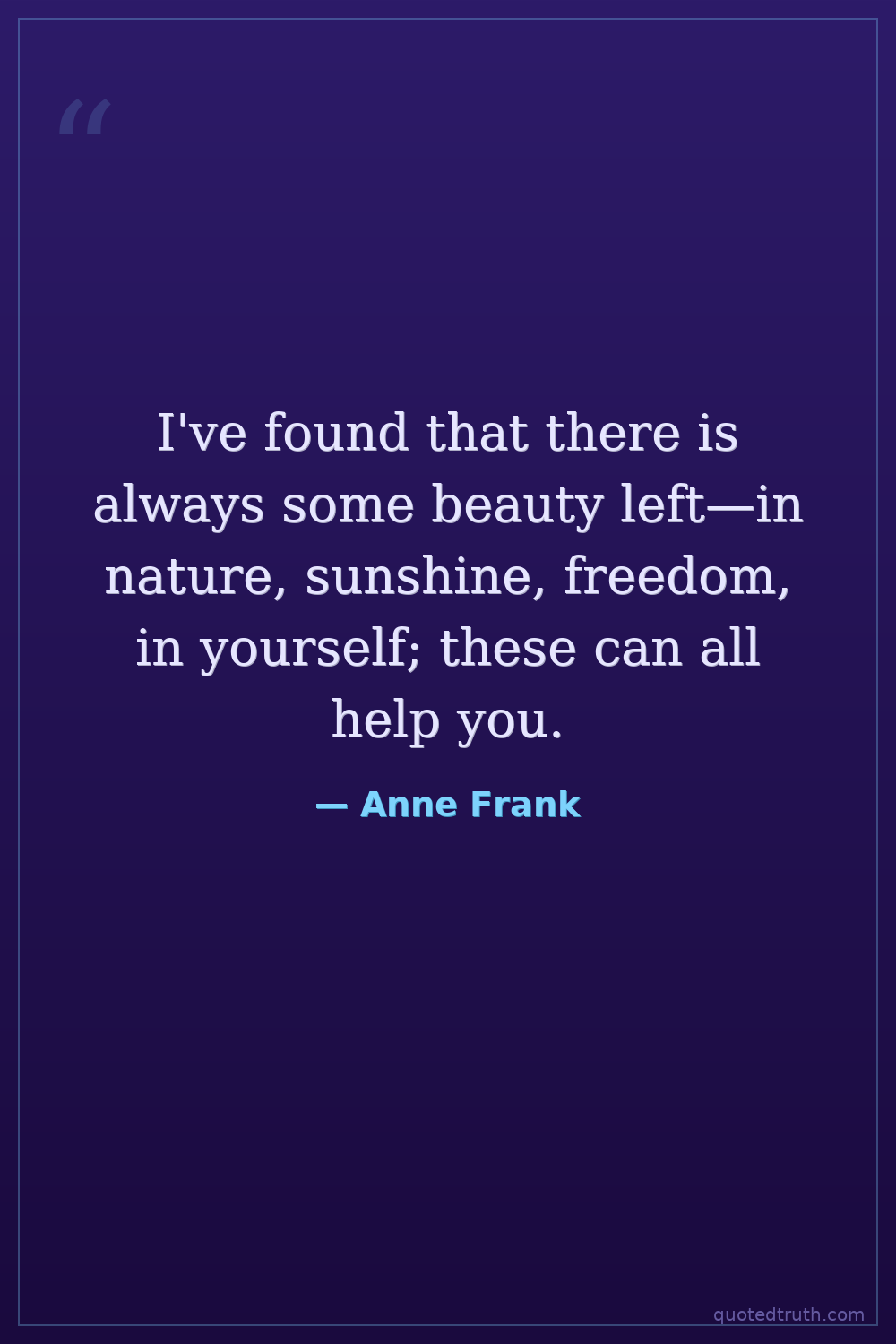 I've found that there is always some beauty left—in nature, sunshine, freedom, in yourself; these can all help you.