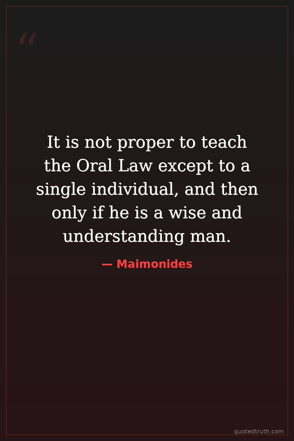 It is not proper to teach the Oral Law except to a single individual, and then only if he is a wise and understanding man.