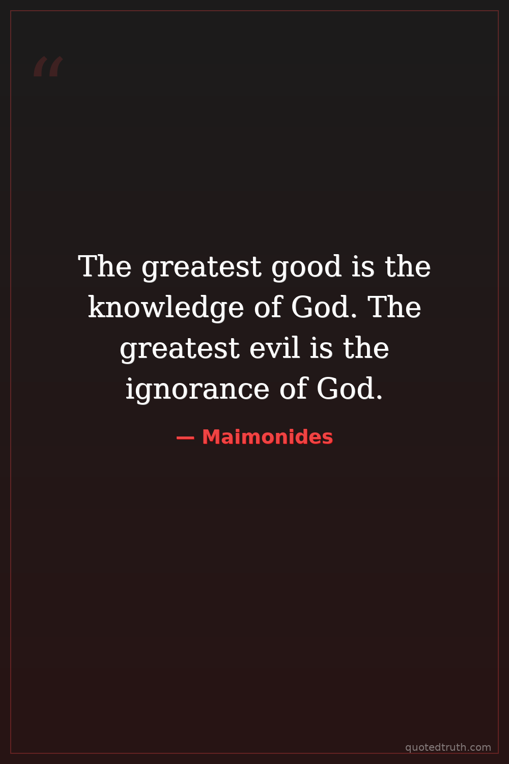 The greatest good is the knowledge of God. The greatest evil is the ignorance of God.