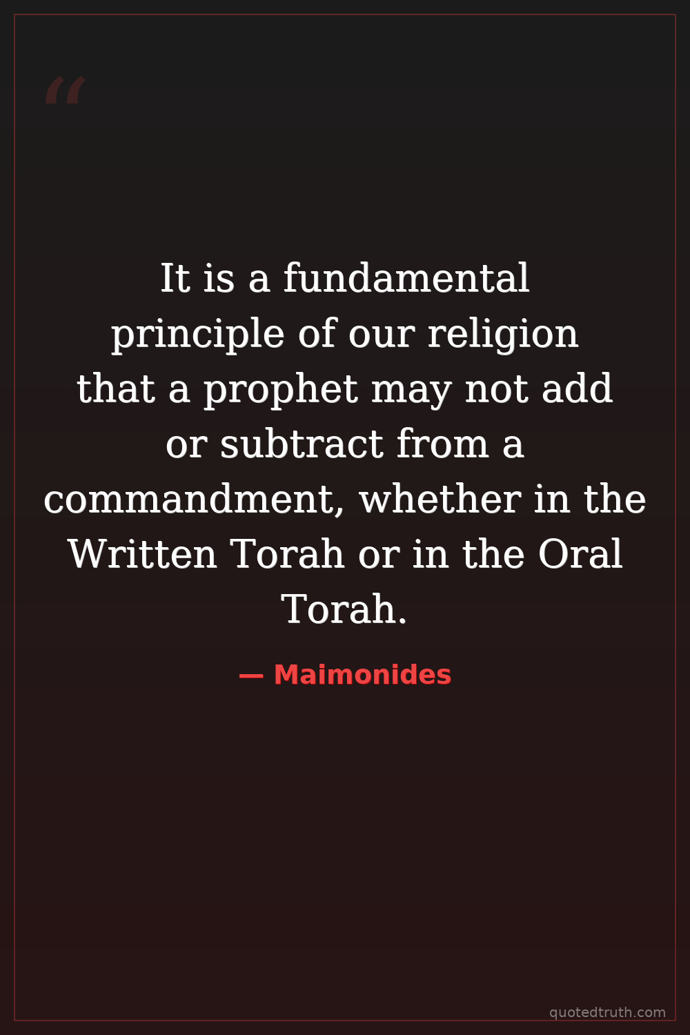 It is a fundamental principle of our religion that a prophet may not add or subtract from a commandment, whether in the Written Torah or in the Oral Torah.