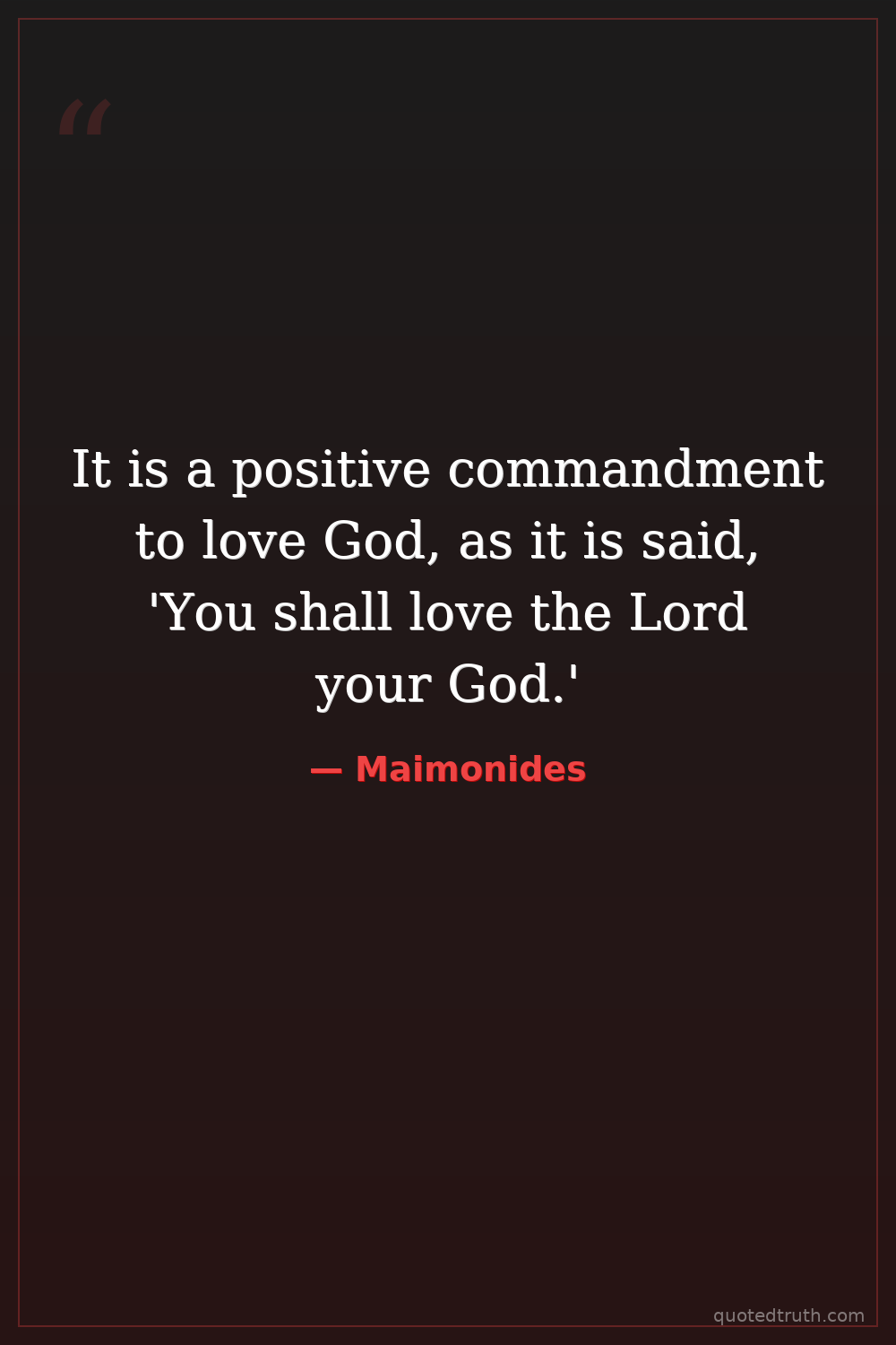It is a positive commandment to love God, as it is said, 'You shall love the Lord your God.'