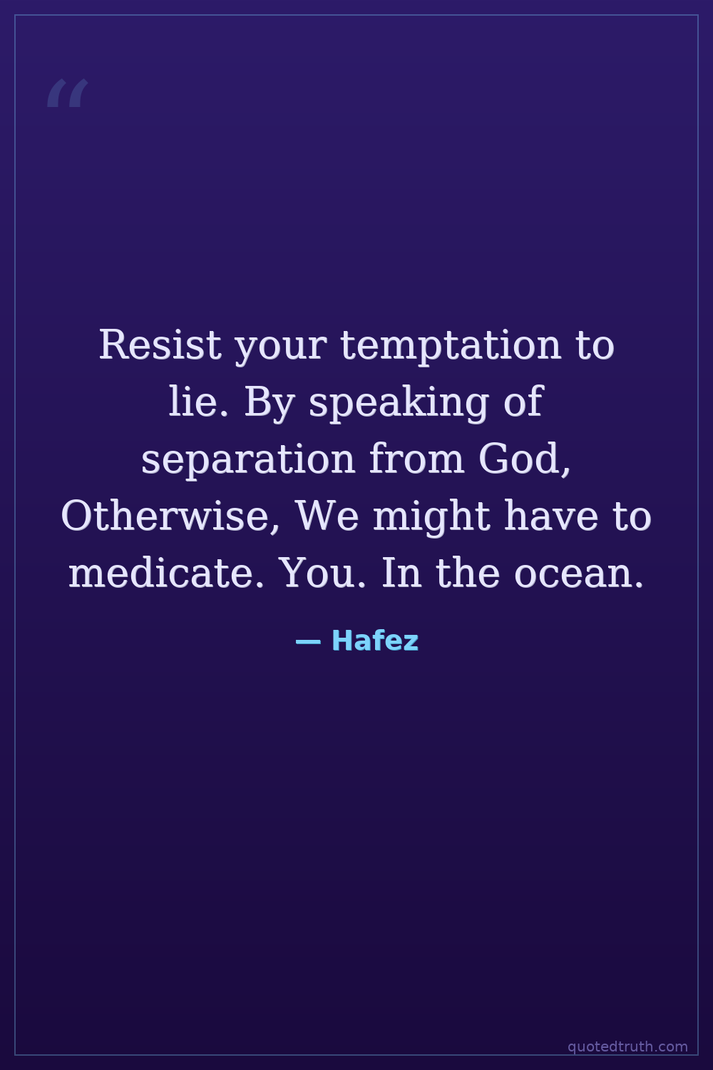 Resist your temptation to lie. By speaking of separation from God, Otherwise, We might have to medicate. You. In the ocean.
