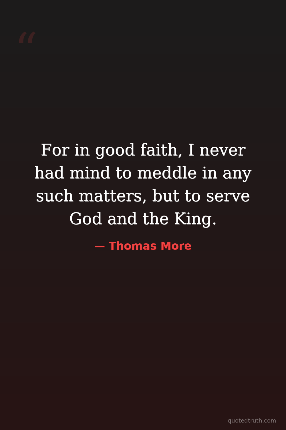 For in good faith, I never had mind to meddle in any such matters, but to serve God and the King.