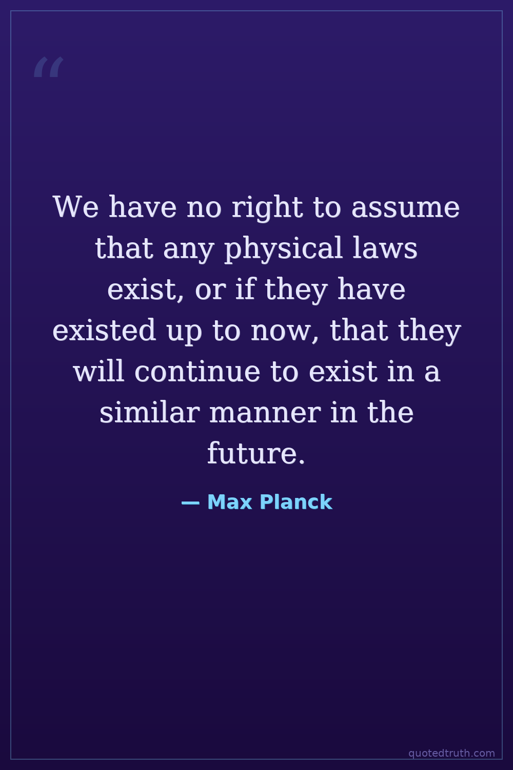 We have no right to assume that any physical laws exist, or if they have existed up to now, that they will continue to exist in a similar manner in the future.