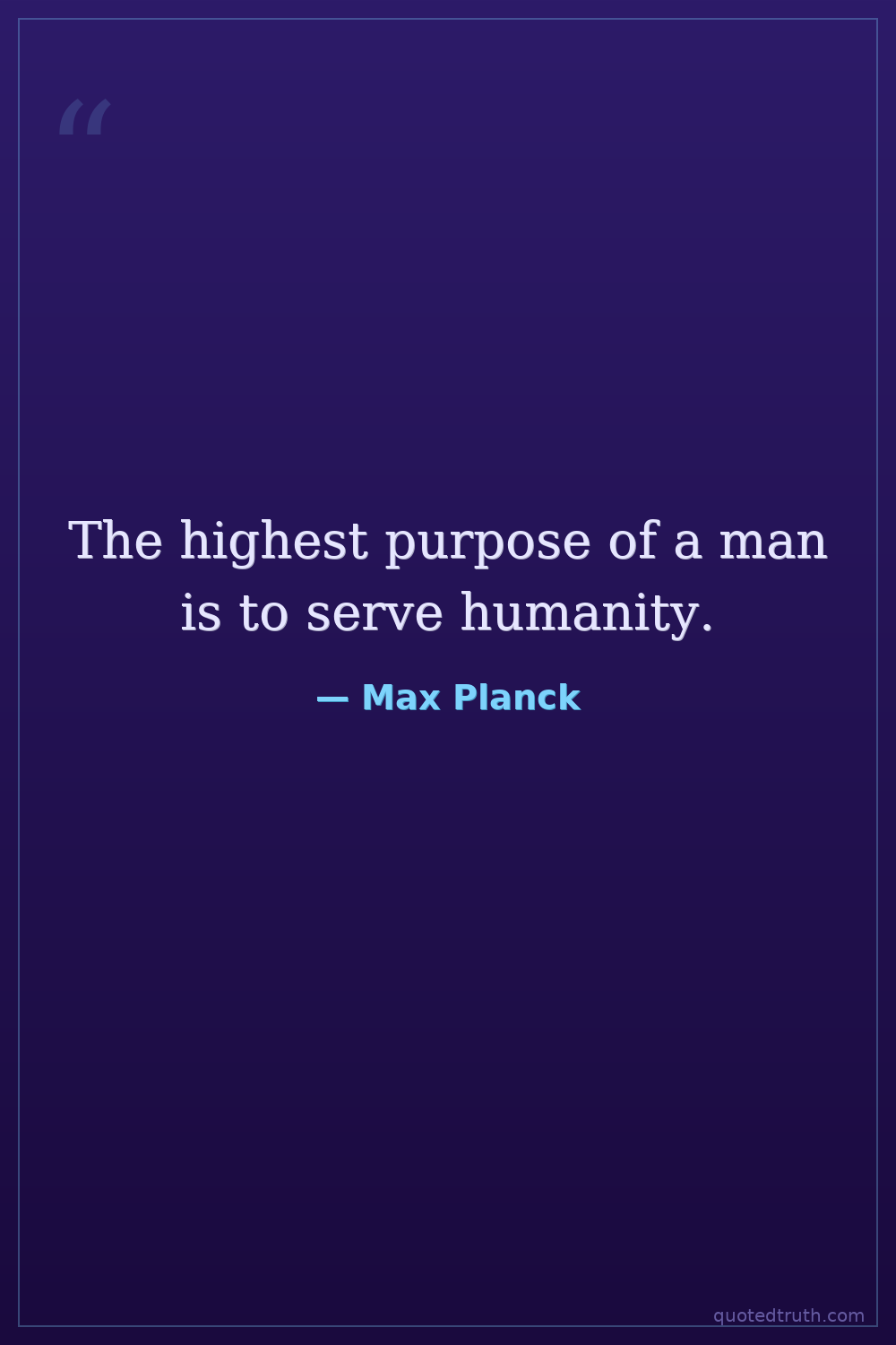 The highest purpose of a man is to serve humanity.