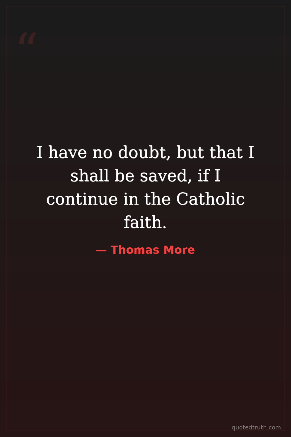 I have no doubt, but that I shall be saved, if I continue in the Catholic faith.