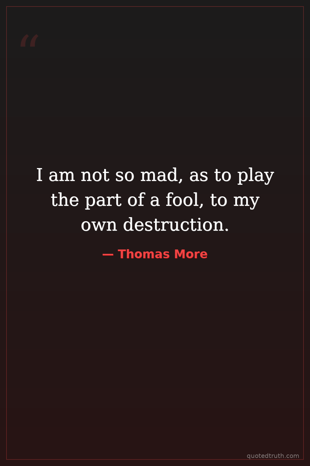 I am not so mad, as to play the part of a fool, to my own destruction.