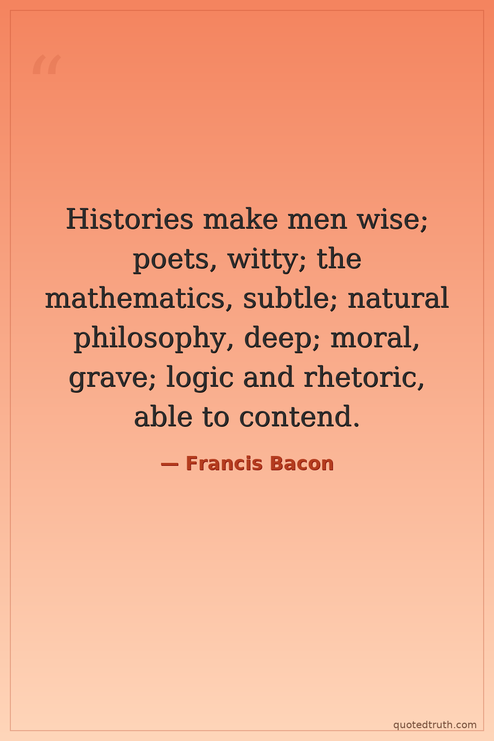 Histories make men wise; poets, witty; the mathematics, subtle; natural philosophy, deep; moral, grave; logic and rhetoric, able to contend.