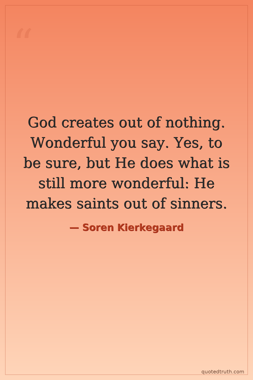 God creates out of nothing. Wonderful you say. Yes, to be sure, but He does what is still more wonderful: He makes saints out of sinners.