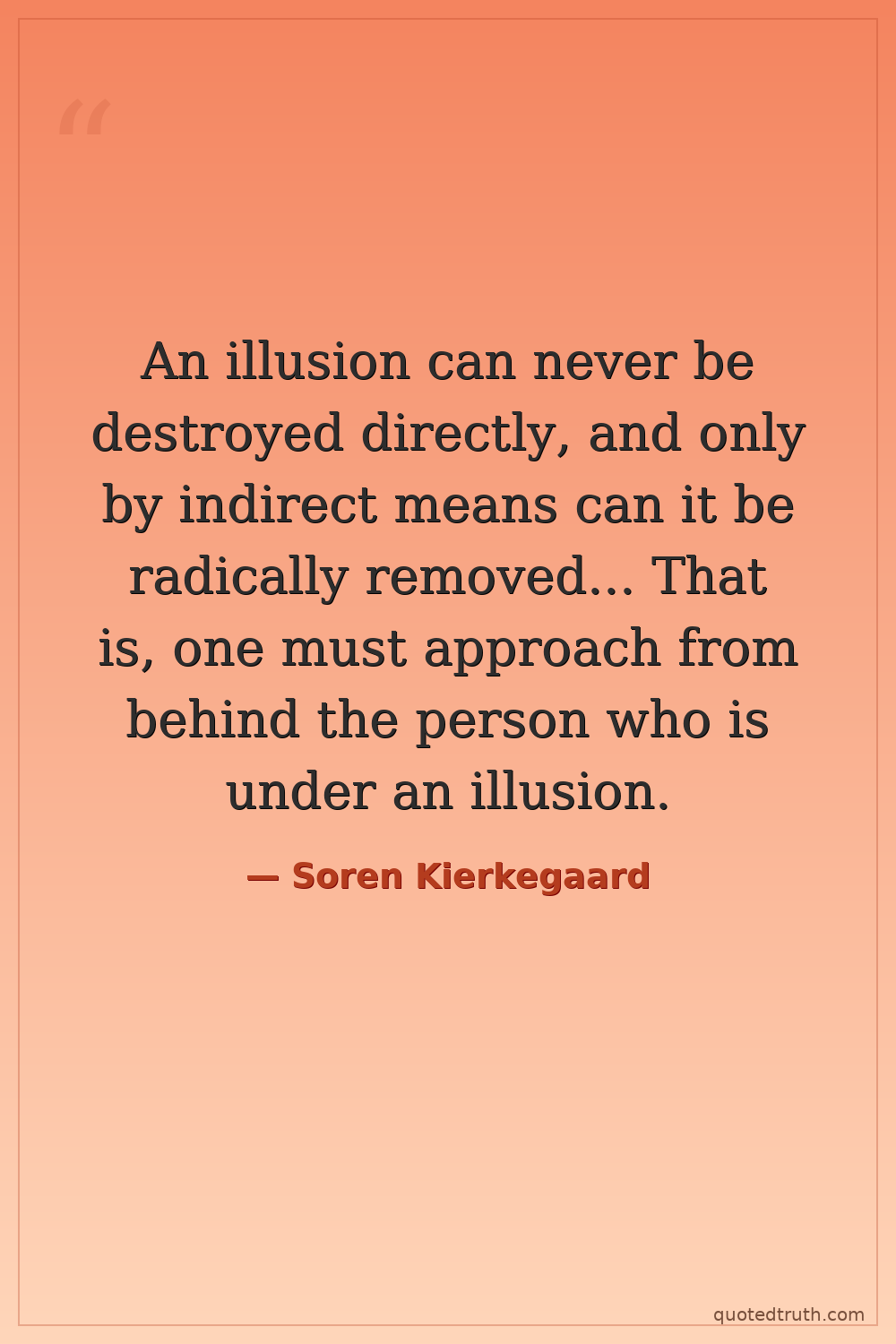 An illusion can never be destroyed directly, and only by indirect means can it be radically removed... That is, one must approach from behind the person who is under an illusion.