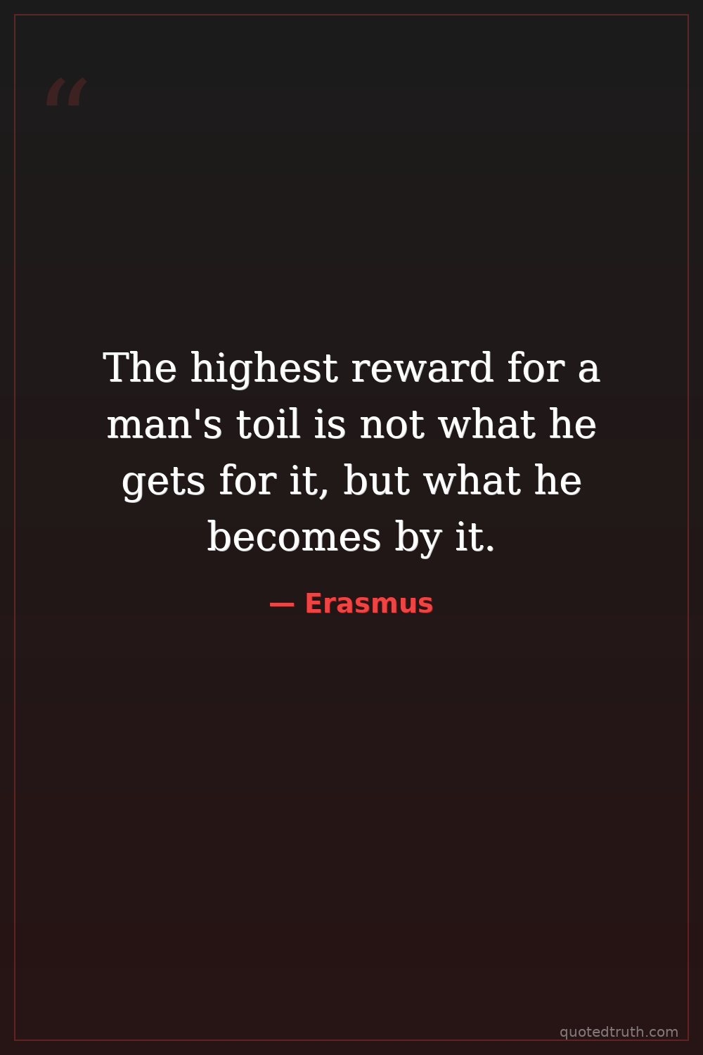 The highest reward for a man's toil is not what he gets for it, but what he becomes by it.