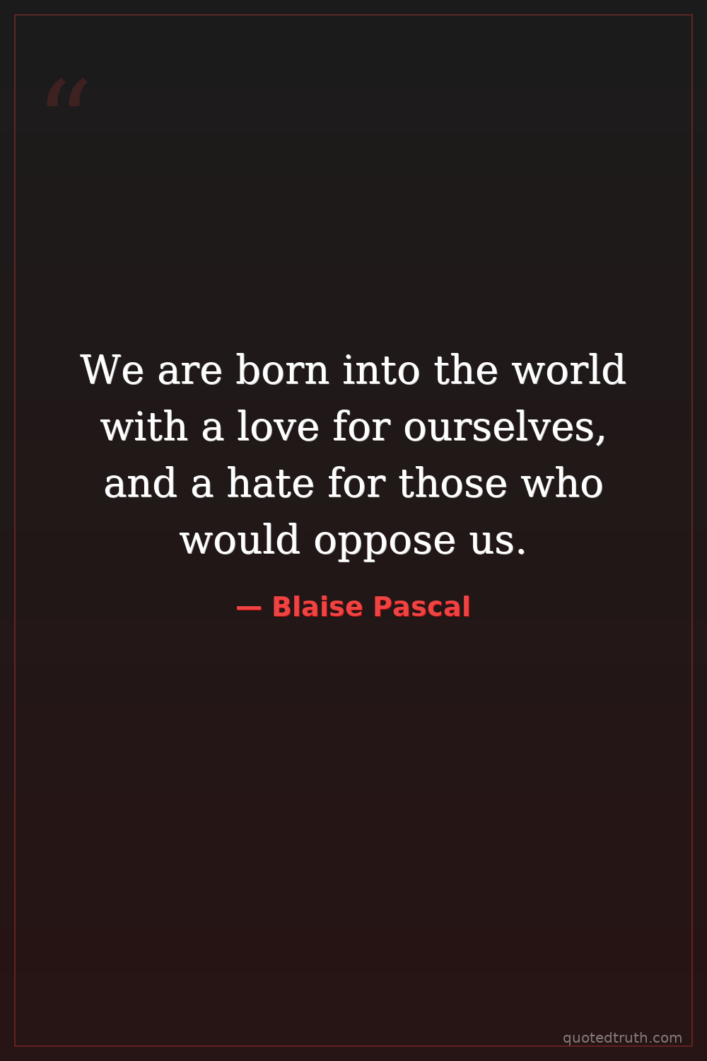 We are born into the world with a love for ourselves, and a hate for those who would oppose us.