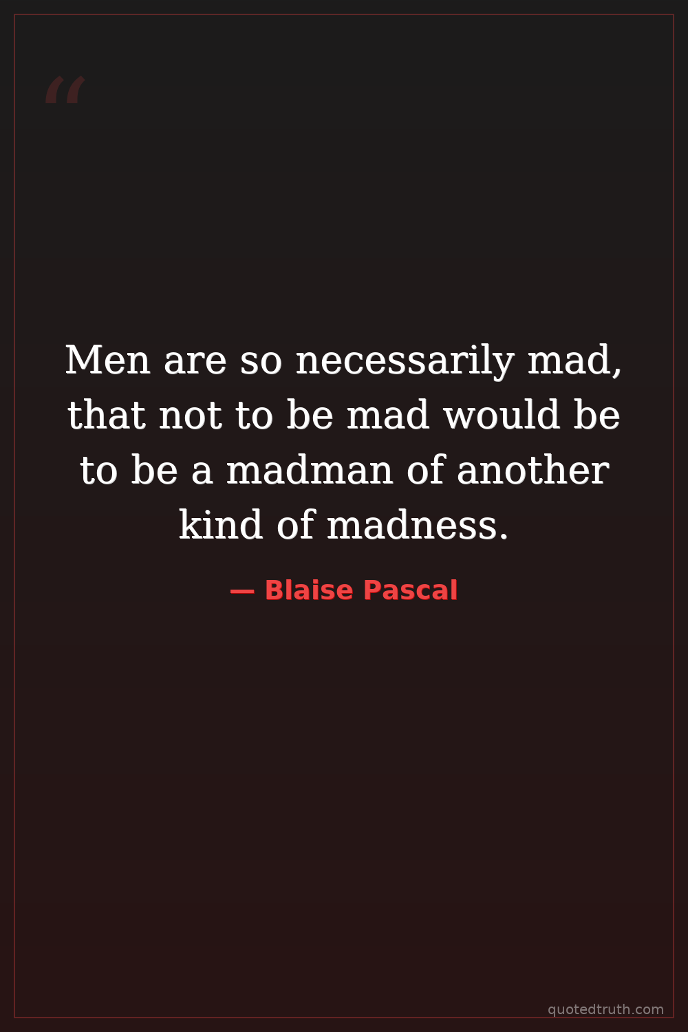 Men are so necessarily mad, that not to be mad would be to be a madman of another kind of madness.