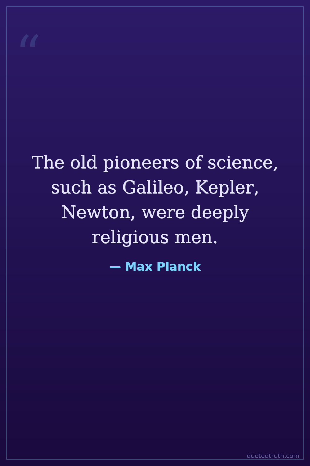 The old pioneers of science, such as Galileo, Kepler, Newton, were deeply religious men.