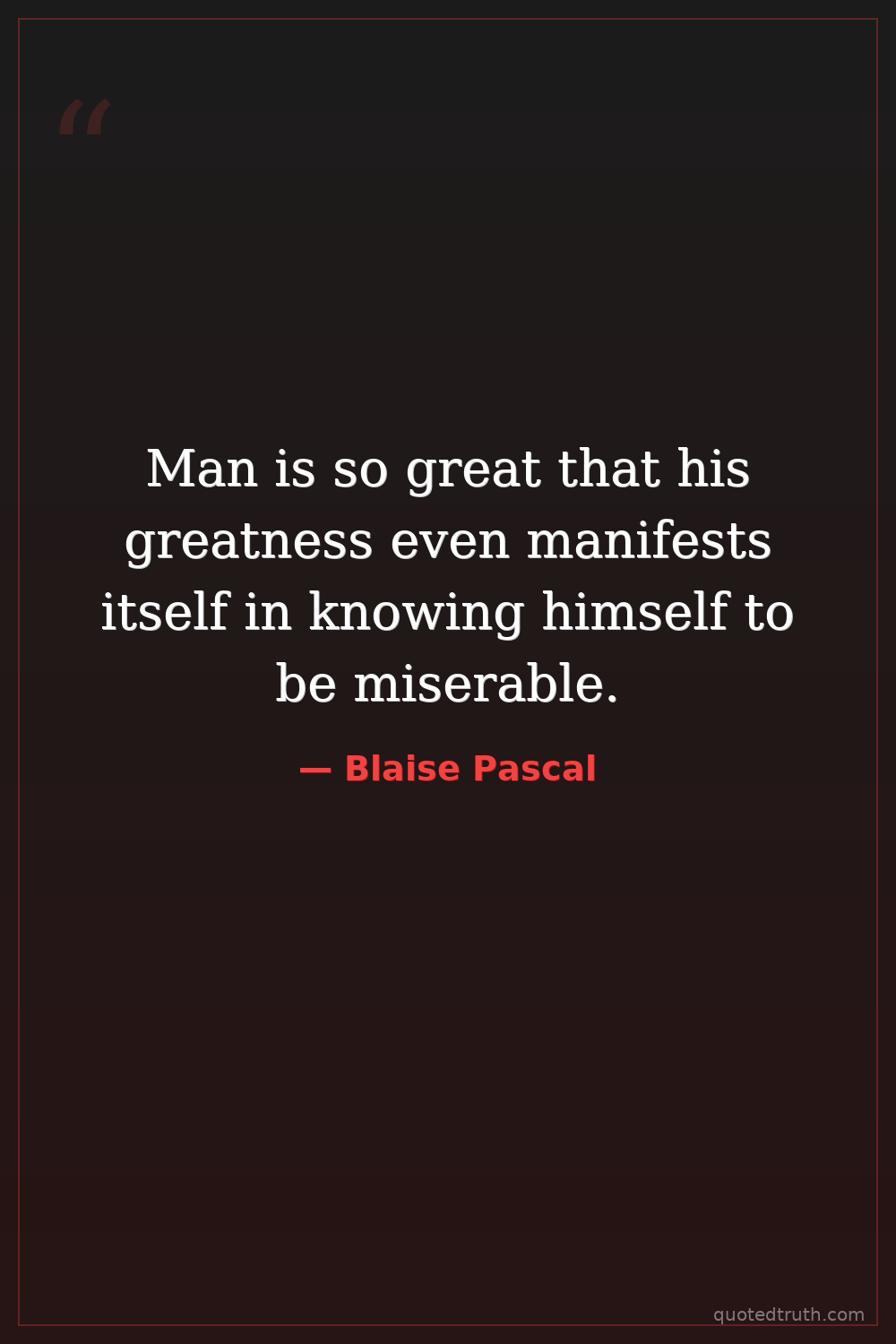 Man is so great that his greatness even manifests itself in knowing himself to be miserable.