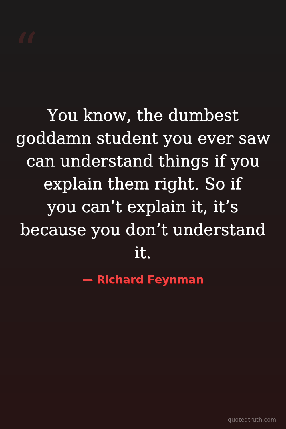 You know, the dumbest goddamn student you ever saw can understand things if you explain them right. So if you can’t explain it, it’s because you don’t understand it.