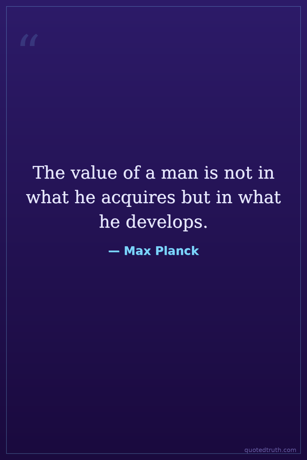 The value of a man is not in what he acquires but in what he develops.