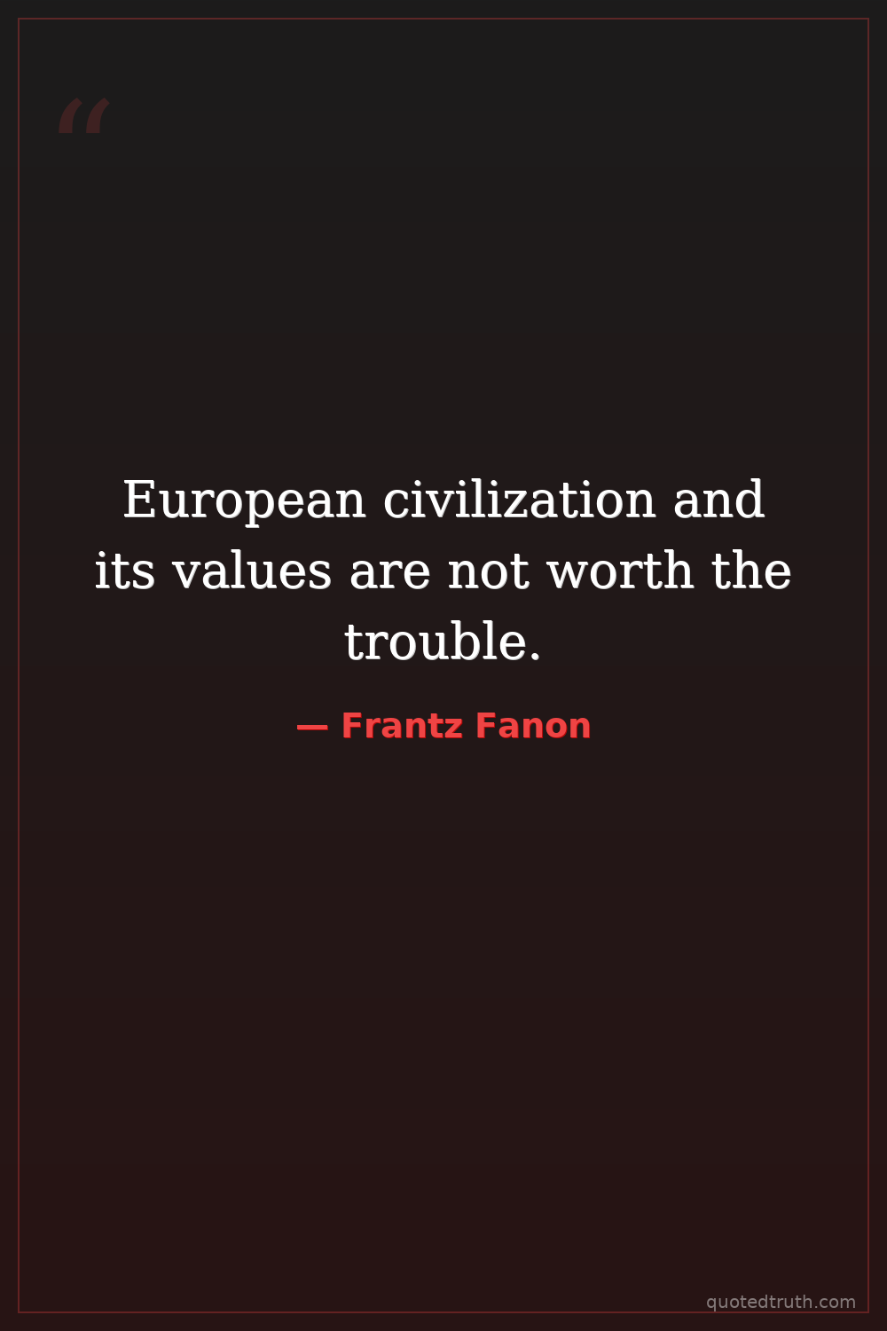 Controversial"The colonialist is not content with taking the native in his grip and emptying his brain of all form and content. By a kind of perverted logic, he turns to the past of the oppressed people, and distor…"