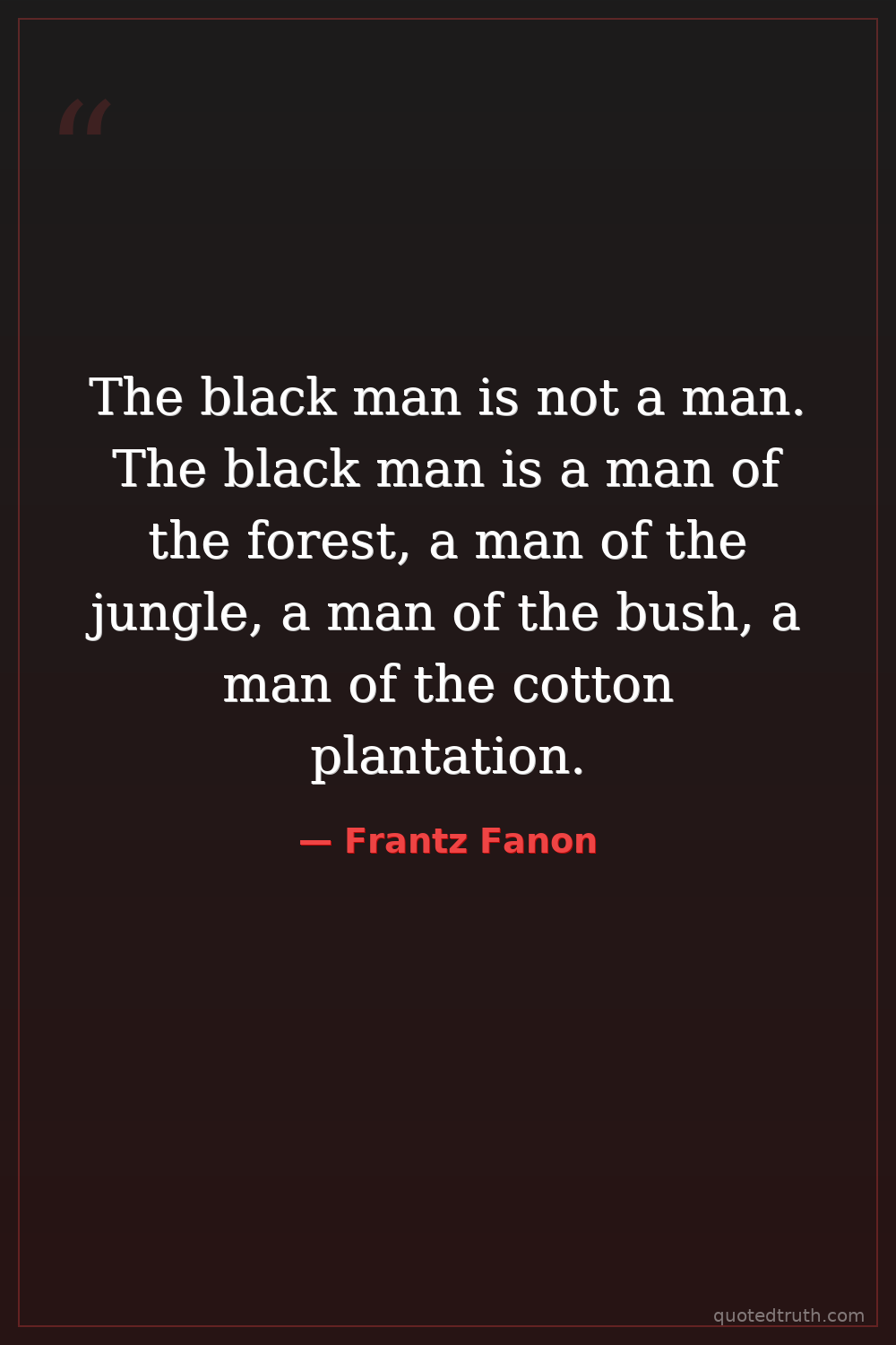 The black man is not a man. The black man is a man of the forest, a man of the jungle, a man of the bush, a man of the cotton plantation.