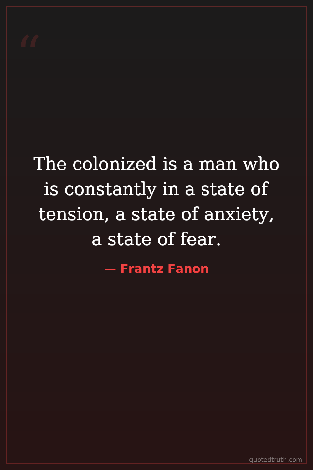 The colonized is a man who is constantly in a state of tension, a state of anxiety, a state of fear.