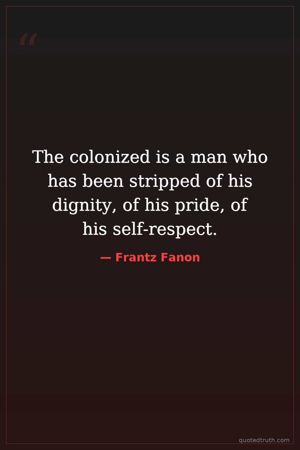 The colonized is a man who has been stripped of his dignity, of his pride, of his self-respect.