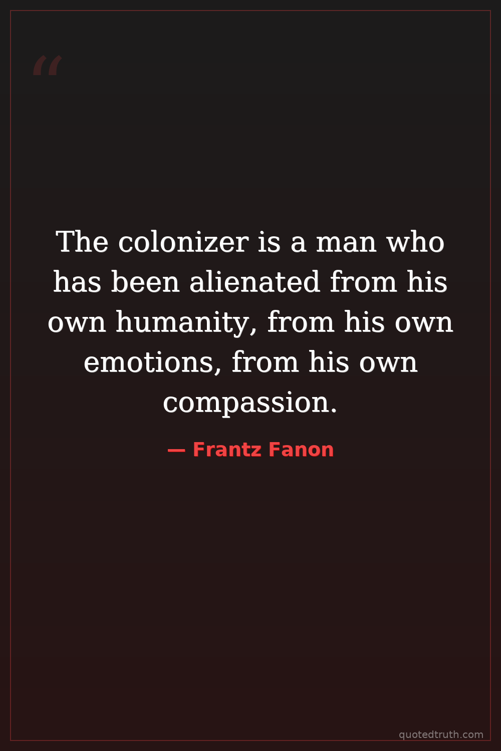 The colonizer is a man who has been alienated from his own humanity, from his own emotions, from his own compassion.