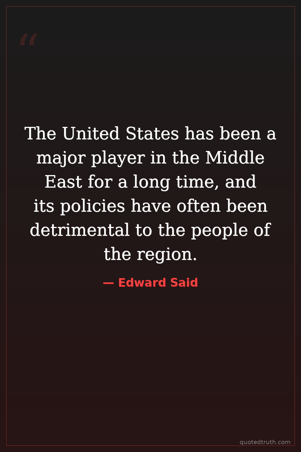The United States has been a major player in the Middle East for a long time, and its policies have often been detrimental to the people of the region.