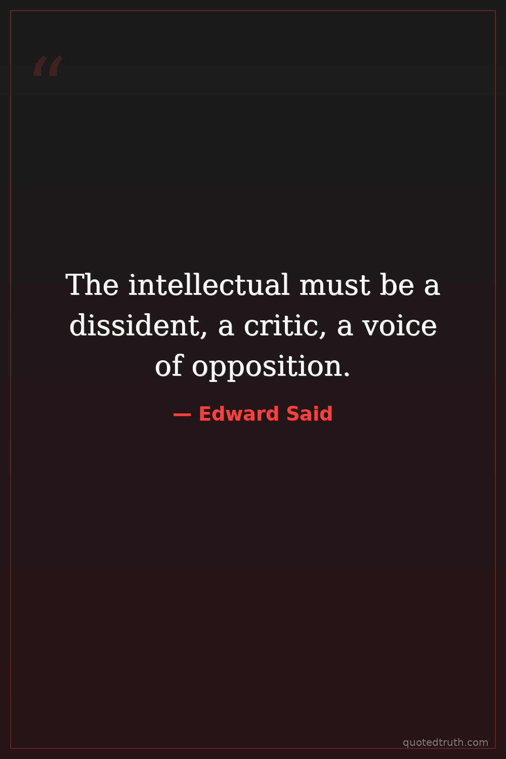 The intellectual must be a dissident, a critic, a voice of opposition.