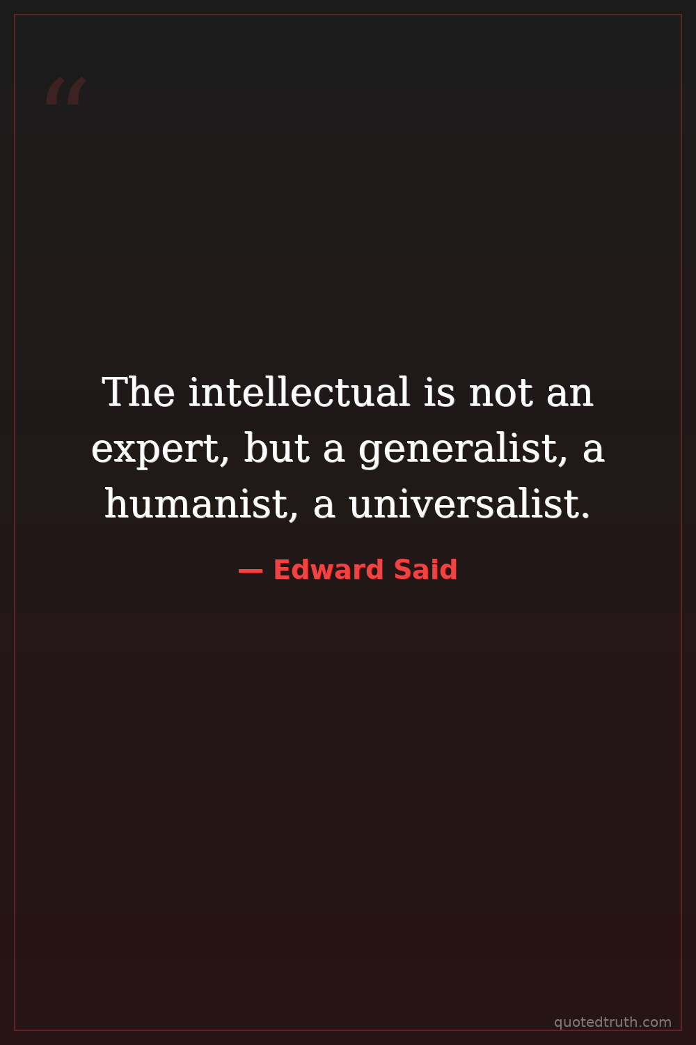 The intellectual is not an expert, but a generalist, a humanist, a universalist.