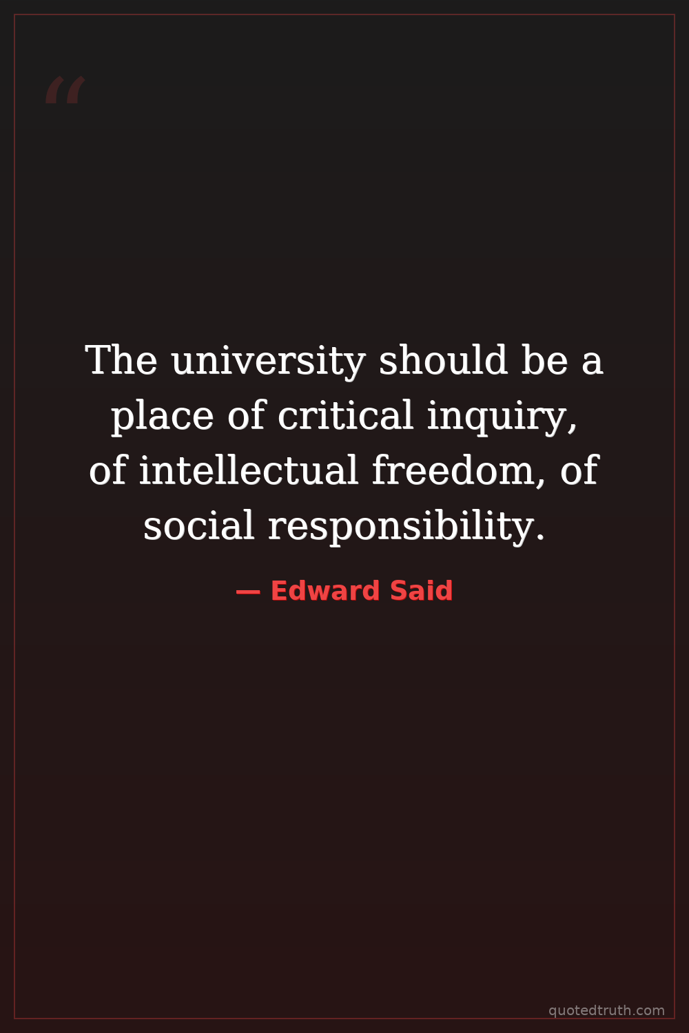 The university should be a place of critical inquiry, of intellectual freedom, of social responsibility.