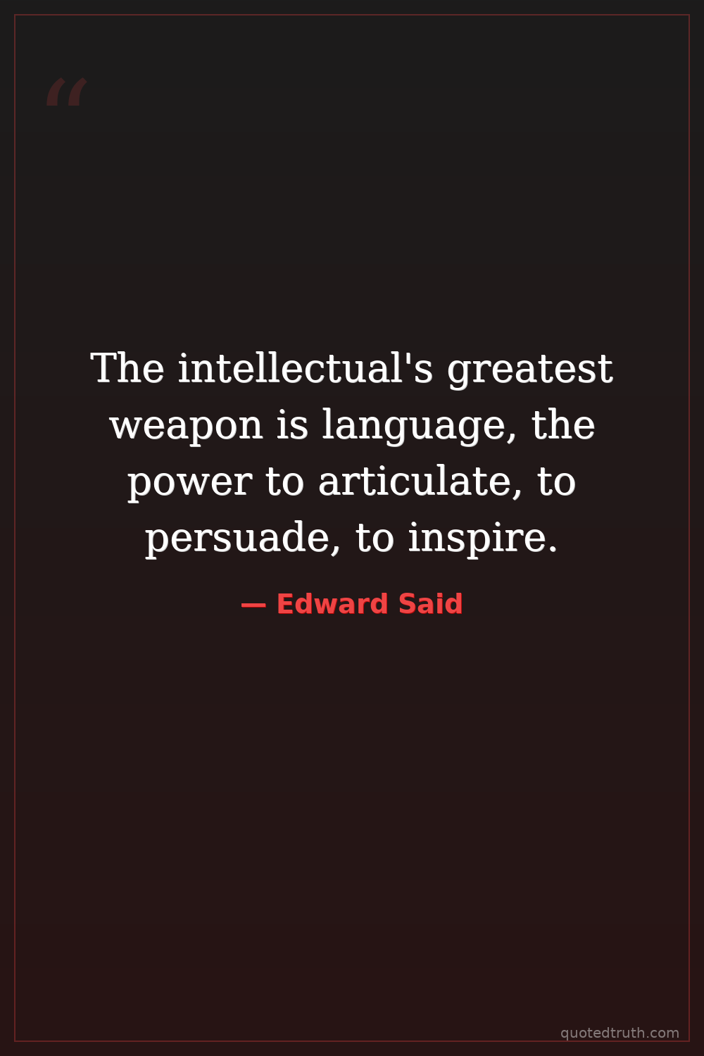 The intellectual's greatest weapon is language, the power to articulate, to persuade, to inspire.