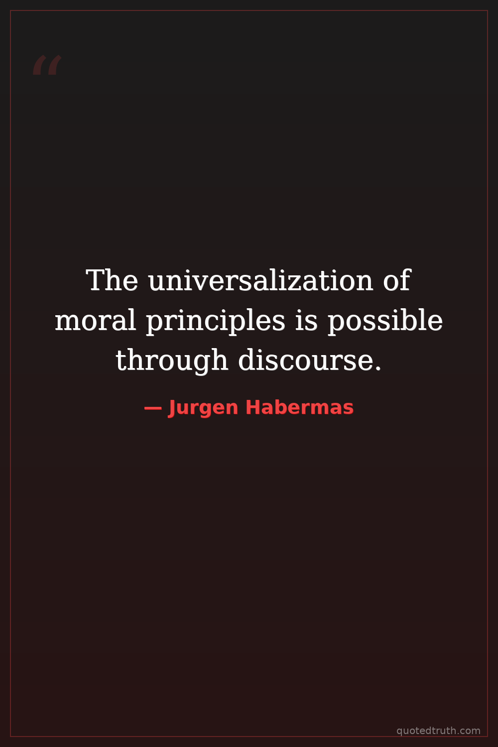 The universalization of moral principles is possible through discourse.