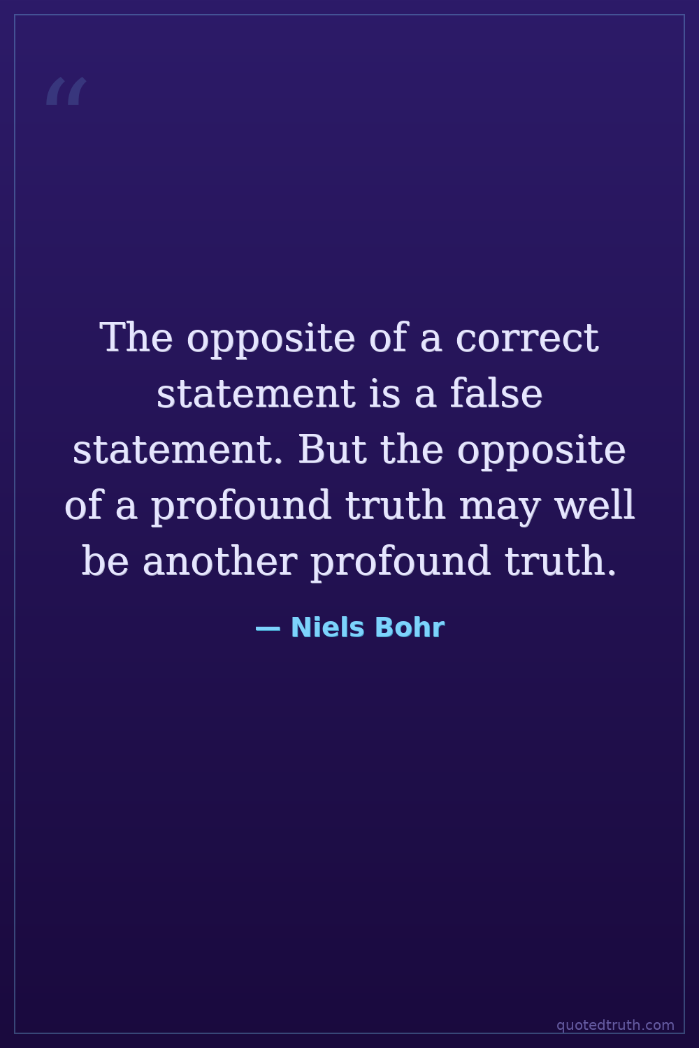 The opposite of a correct statement is a false statement. But the opposite of a profound truth may well be another profound truth.