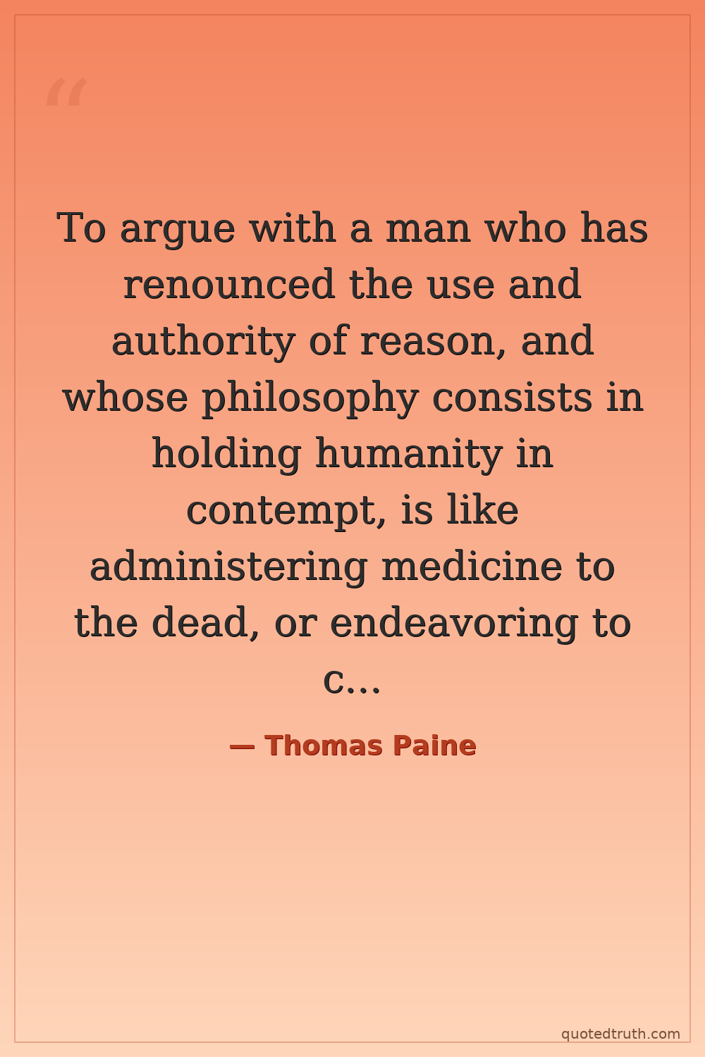 To argue with a man who has renounced the use and authority of reason, and whose philosophy consists in holding humanity in contempt, is like administering medicine to the dead, or endeavoring to convert an atheist by scripture.