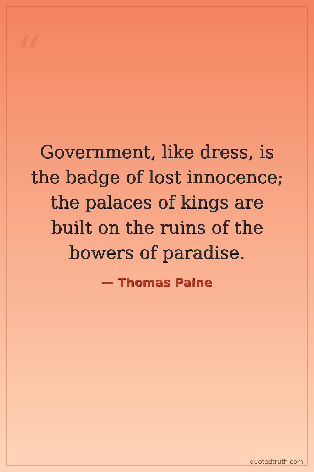 Government, like dress, is the badge of lost innocence; the palaces of kings are built on the ruins of the bowers of paradise.