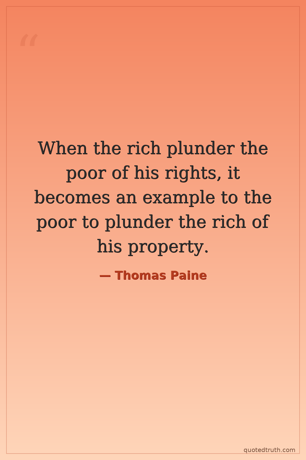 When the rich plunder the poor of his rights, it becomes an example to the poor to plunder the rich of his property.