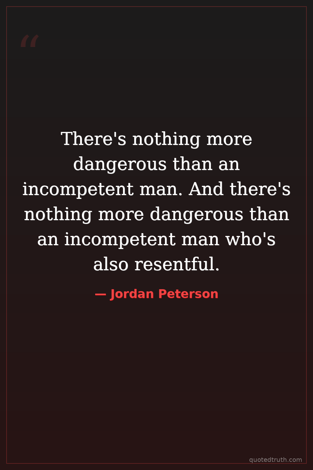There's nothing more dangerous than an incompetent man. And there's nothing more dangerous than an incompetent man who's also resentful.